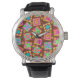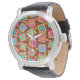 Profitez d'un bloc de courtepointes lumineux et coloré chaque fois que vous regardez votre montre ou offrez-en un cadeau à un amoureux de courtepointes ou de courtepointes. L'art de la surface composée à partir d'oeuvres d'art originales présente des blocs de surface patchwork préférés, ainsi que des blocs uniques créés dans des couleurs vives et dynamiques d'orange, jaune, rose, turquoise et vert citron sur un arrière - plan chocolat. L'art Quilt est l'art original de Phyllis Dobbs, concepteur de tissus et de courtepointes, et il se trouve dans une collection de tissus de Quilting Treasures. Cet art est disponible sur d'autres produits et dans plusieurs arrière - plans de couleurs. D'autres produits sont disponibles dans la boutique Phyllis' Zazzle BusinessWithFlair.