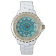 Montre Blue Aqua Mandala Rosette Retro Hippie