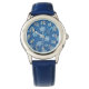 Montre en cuir bleu acier inoxydable pour enfants avec une image de Shields of David (ou Stars of David) sur le bleu. Argument en option face de l'horloge en argent. Voir le charme rond correspondant et le porte - clé de bouton de base arrondi. Voir l'ensemble de la collection Hanoukka Watch sous la catégorie ACCESSOIRES dans la section VACANCES.
