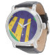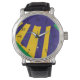 Il n'y a pas trop de sous-entendus dans cette montre. Le visage est orné d'un arrière - plan bleu avec des rayures dorées audacieuses et une touche de vert.
