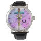 MONTRE CADUCUS D'OR AVEC DES NOEUDS CELTIQUES MONOGRAMME