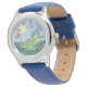 Cette jolie montre bleu moderne pour enfants présente un adorable dragon vert au soleil, et a de l'espace pour vous d'ajouter votre nom de garçon. Avec des chiffres clairs et faciles à lire, cette "première" montre est idéale pour les enfants ou les tout-petits qui commencent à apprendre l'heure. Le design parfait sur le thème du dragon pour votre petit !