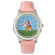 Regarder avec l'illustration mignonne fille en robe rose équitation poney blanc