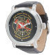 Cette conception comporte un emblème de pompier rouge et noir sur un arrière - plan noir.
