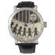 Montre vintage en cuir noir pour hommes : Chats Dancing in the Moonlight, illustration de Louis Wain (1860-1939).