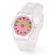 MONTRE CHEVRONS ROSE VERT ET PIERRES COLORÉES