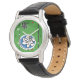Montre à fleurs contemporaine chic. Apportez le bonheur à votre monde avec des fleurs rouge blanc bleu noir sur arrière - plan vert clair. Oeuvre originale d'Anne Bell.