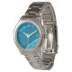 Cette belle montre aux chiffres blancs présente un design tourbillonnant abstrait dans des tons turquoises et tendance.