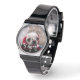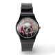 Chihuahua mignon wuff vous aimez Valentine Custom text Wrist Watch. Valentines amoureux de les chiens idée cadeau. Drôle adorable chien mou blanc avec de grands yeux ronds, nez noir, langue qui sort et bandana rouge sur la tête.