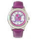 Chloe nom signifiant heraldry princess knights boucliers style enfant bracelet montre. Bouclier style Chevalier monogramme lettre C nom d'art simple horloge numérotée visage parfait pour dans les tons de violet, rose chaud, blanc et gris. Personnalisez avec votre propre nom et nom signifiant pour un grand cadeau personnalisé unique, cet exemple est pour les noms avec la lettre C et lit actuellement Chloe Blooming déesse. Autres éléments et noms correspondants disponibles. Dessin de bouclier unique, art graphique, recherche de nom, rédaction et design par Sarah Trett. www.sarahtrett.com pour www.mylittleeden.com
