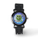 Cette montre a un design d'illustration vectorielle avec une chouette, décorative, en tons verts sur une branche tourbillonnant. L'arrière - plan est une pleine lune bleue. Le design des numéros d'horloge sur cette montre est un objet modèle. Si vous aimez votre montre plus sans eux il suffit de supprimer ce calque. Il est également possible d'ajouter du texte comme un nom ou des initiales.