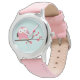 La montre personnalisée présente une adorable illustration vectorielle d'un hibou perché sur une fleur de cerisier ou un sakura japonais.