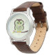 La montre élégante personnalisée présente une illustration vectorielle douce d'un hibou perché sur une branche d'arbre sur un arrière - plan motif pois. Babystar Design à l'adresse mygrafico.com