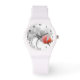Montre blanche avec 4 roses blanches et une rose rose païenne. Cette montre a les numéros ajoutés à l'avant. Très jolie montre pour un cadeau ou pour vous-même.