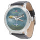 L'Iconic P51D Mustang, Europe 1944 dispose sur cette montre à poignet en acier inoxydable.Oeuvre originale.Un vrai classique américain.