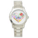 Forme de coeur avec le mot "professeur" au centre avec une règle, des clips de papier, une pomme, ABC, les coeurs, et un crayon qui fait la bordure du coeur. Dans le coeur, on voit des crayons, A+ et des coeurs.