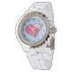 Cette montre de coeur rose et rouge griffée fera un joli et charmant ajout à votre style personnel. Cette montre unique présente une image captivante d'un coeur tissé de manière complexe à partir d'éléments roses et rouges vibrants, ajoutant une touche de chaleur et d'amour à votre poignet. Le visage de la montre comporte des chiffres arabes noirs en gras encerclant les bords, affichés dans une police de style manuscrit ludique qui améliore l'aspect fantaisiste du design. Avec son esthétique captivante et son chronométrage précis, cette montre bracelet n'est pas seulement un accessoire fonctionnel, mais aussi une oeuvre d'art qui réchauffe le coeur de votre journée par son charme gai. Découvrez la joie de la garde du temps avec la montre de coeur rose et rouge.