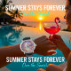 Vivid tropical sunset beach-themed clock featuring a flamingo, vibrant flowers, shells, and a sunny seascape, evoking feelings of relaxation, joy, and coastal life with artistic design and lively hues.