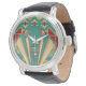 Design angulaire art déco vintage dans rouge foncé et turquoise.