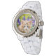 Un chaton adorable sur un rocher dans un jardin fleuri. Un mignon petit chat rouge aux yeux bleus magnifiques, photo prise par Katho Menden. Cette montre en strass pour femmes avec plaque d'appel est une idée cadeau pour les amateurs de chat et d'animal de compagnie. http://www.zazzle.com/kathom_photo - Si vous voyez un design qui n'est pas disponible sur votre produit désiré, n'hésitez pas à me contacter par mon magasin et je serai heureux de créer le produit pour vous dès que possible.