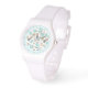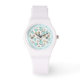 Une montre avec une jolie ligne motif de fruits style dessin. Couleurs vert clair et jaune. Un design estival amusant.