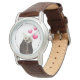 Une montre avec l'image d'une jolie loutre avec des coeurs flottant vers le haut. Les coeurs sont roses et somptueux avec une brillante réflexion.Cette loutre est très adorable avec ses pattes reposant sous son petit menton furieux. Sa fourrure a l'air mouillée depuis qu'il est dans l'eau.
