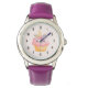Une montre à l'aquarelle dessinée d'un cupcake au glaçage rose, une corne de licorne et des roses colorés.