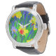 Montre joyeuse avec une impressionniste peinture numérique (photo) de jonquilles de printemps brillantes.