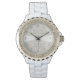 A Digitalbcon Images Design avec une couleur de perle satinée et un thème de design damassé avec une variété d'images, de formes, de motifs, de styles et de polices personnalisées dans cette unique "Damask Pearl Mariage Anniversary" Watch. Ce design attrayant et élégant est livré avec des lettres de texte personnalisables et contrastant face de numéro d'heure noire et fait le cadeau parfait pour le couple d'anniversaire ou à votre conjoint en cette occasion mémorable.