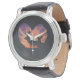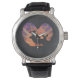 C'est un design original pour les amateurs de chasse et de faune sauvage. Cette image montre une paire de silhouettes de cerfs devant un coucher de soleil / lever de soleil qui sont encadrés à l'intérieur d'une forme de coeur. Cette conception montre l'amour des animaux et / ou la chasse. Le design est tiré d'une peinture originale réalisée par Christina Appling du Montana ©2018. Silhouette de cerfs, Paire de cerfs, Amour de cerfs, Lever du soleil, Silhouette de cerfs, Saison de chasse, Scène faunique, Montre de chasse pour hommes, Style Vintage Montre pour hommes.