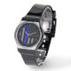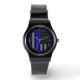 Une ligne Bleue Mince symbolise le drapeau américain dessin personnalisé sur une montre. Une excellente idée cadeau pour les rassemblements, les célébrations commémoratives et les occasions de commémoration. Utilisez le lien "Contacter ce concepteur" pour nous contacter avec vos demandes de design spécial ou pour obtenir de l'aide pour tout projet de personnalisation.