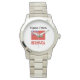 La montre féminine personnalisée est ornée du drapeau bermudien avec le mot BERMUDA en-dessous. Ci-dessus, un endroit pour un nom pour personnaliser votre cadeau ou customiser votre gardien. Modifiez la police et la couleur du nom à l'aide de la fonction de conception de modification.