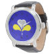 Montre avec design avec drapeau de la Région de Bruxelles-Capitale de Belgique, drapeau bleu avec iris jaune, gris et blanc