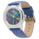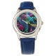 Cette cool funky moderne élégante montre personnelle tendance. C'est une très belle horloge branchée avec des chiffres blancs et un design graphique cool funky d'un arc-en-ciel. Vous pouvez modifier le texte et la couleur arrière du sol à votre choix.