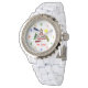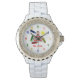 Une montre pour les enseignants avec un dessin crayon inspiré de l'illustration d'une école. Personnalisez avec le nom sous le dessin. Les chiffres sont multicolores.