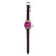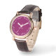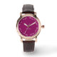 Une montre élégante et festive, avec les mots 'Merry & Bright' répété autour du bord dans une élégante typographie de script. Le texte est blanc, sur une riche face magenta de cassis. Personnalisez cette montre élégante avec votre nom ou autre texte pour une touche de finition individuelle.