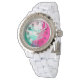 Élevez votre style avec l'éblouissante montre en émail blanc en strass féminin. Dotée d'une lunette attrayante ornée de cristaux chatoyants et d'un bracelet en alliage d'émaux élégant disponible en noir ou blanc, cette montre est un parfait mélange d'élégance et de sophistication. Élégante et pratique, cette montre garde le temps mais fait aussi une déclaration de mode audacieuse. Le visage unique de la montre présente un motif rose et vert vif teint de cravate, ajoutant une touche ludique et artistique à votre look.