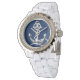 Montre en strass personnalisée avec ancre en argent. Ajoutez votre nom à cette montre nautique ou laissez le champ de nom vide si vous n'avez besoin que du design. Montre féminine, élégante strass avec bracelet blanc et visage d'ancre nautique.