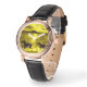 Une montre d'art équin avec deux chevaux qui longent le bord de mer, éclaboussant dans la mer, en silhouette contre un arrière - plan doré. Cette image de bord de mer est tirée de ma peinture en verre originale avec un effet numérique. ©Annabel Potter