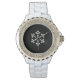 Cette montre pour femmes est montrée avec un visage noir et des sangles blanches et accentuée de strass et a une empreinte de fêtes de neige. Customisez cette montre ou achetez tel quel.