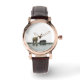 Femme Parfait Carré Brown Leather Strap Watch avec grizzly ours & petits Créé par becsandmore