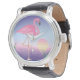 Flamant rose au coucher du soleil orne cette montre.