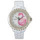 Mignon, flamant, oiseau tropical, faune, moderne, mode watercolor watch. Personnalisez-le avec votre nom.