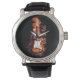 Faites savoir au monde que le rock 'n' roll ne mourra jamais avec cette montre au poignet rock and roll, représentant une guitare électrique vêtue de flammes mystiques. Guitare flamboyante sur un arrière - plan noir avec bandeau en cuir noir. Cela ferait un grand cadeau à l'amoureux de la musique dans votre vie.