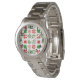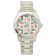 Cette montre pour femmes a un design de Noël de différents flocons de neige en rouge et vert en rangs.