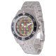 Cette montre masculine a un design d'histoire noire de fleurs et de rangées faites de triangles et de rectangles.