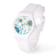 Montre Fleurs Indigo dorées avec Arrière - plan blanc