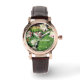 Montre vintage en or rose avec bracelet noir
