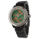 Montre Fleurs Zinnia orange, feuilles verts sur vert fonc
