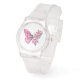 Flower arrangement of pink butterfly with rose Japanese cherry blossoms on white background.